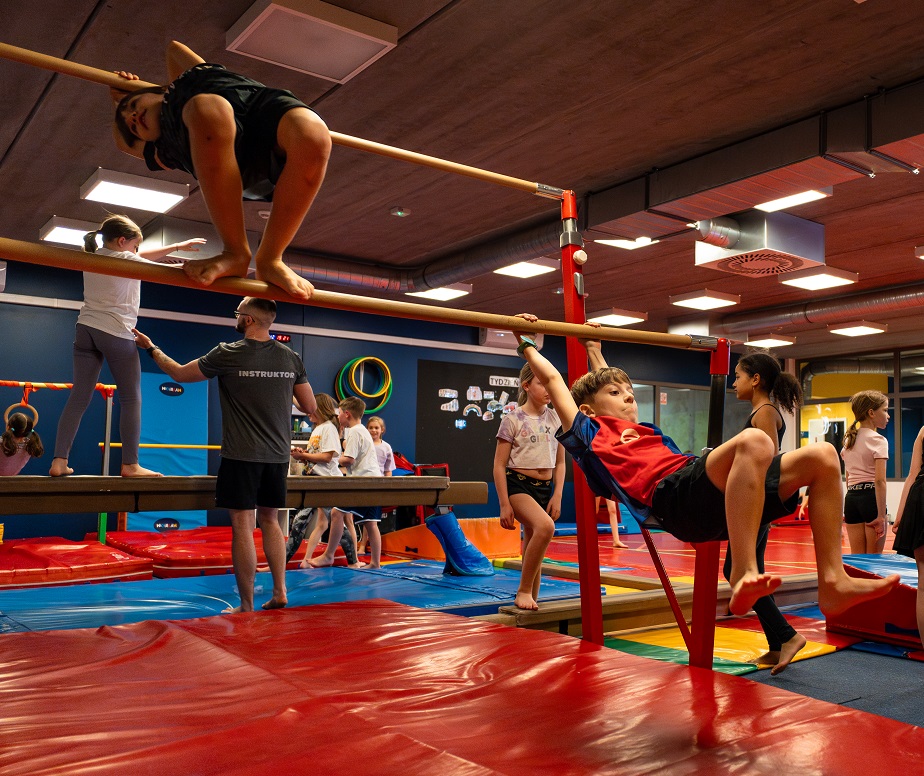 🤸 Nauka i doskonalenie elementów takich jak przewroty, skoki, równowaga, siła i koordynacja